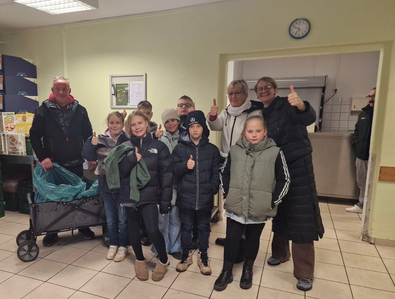 Ebenfalls am letzten Schultag vor den wohlverdienten Weihnachtsferien übergaben acht ausgewählte Kinder der Tafel Magdeburg eine Kleiderspende. Mit dem Bollerwagen wurden zwei Säcke voll Sportschuhe, Kleidung und Turnbeutel in die St.-Josef-Straße transportiert. Vor Ort bekamen unsere Kinder und Pädagogen noch eine kleine Führung mit vielen Erklärungen. Eine durchaus prägende Erfahrung, gerade jetzt vor dem Weihnachtsfest. Auch im kommenden Jahr möchte wir die ein oder andere Kleiderspende der Tafel Magdeburg übergeben.